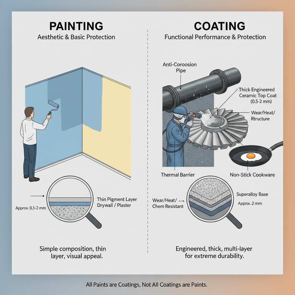 Coating: Regarding basic ingredients, the coating is almost identical. Where paint cannot do many performances, but the coating can do with additional ingredients. The choice of generic materials consistent with the sort of substrate, temperature, environment, performance, application methods, life cycle cost, and the various factors involved. In a simple definition, Coating is applied for Corrosion protection and other intended and specific purposes, but aesthetics is a smaller amount of importance in coating than paint. However, in the final layer, the importance of finish is demanded by many industries.