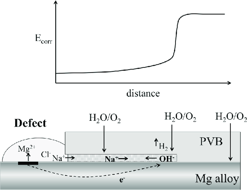 Within the metal surface, a conductive pathway allows electron flow from the anodic (acidic) region—where metal dissolution occurs (pitting)—to surrounding cathodic (alkaline) areas. This electron movement balances the localized anionic activity within the pit. As a result, alkaline cathodic sites form around the acidic anodic zones, explaining why pitting corrosion remains highly localized.